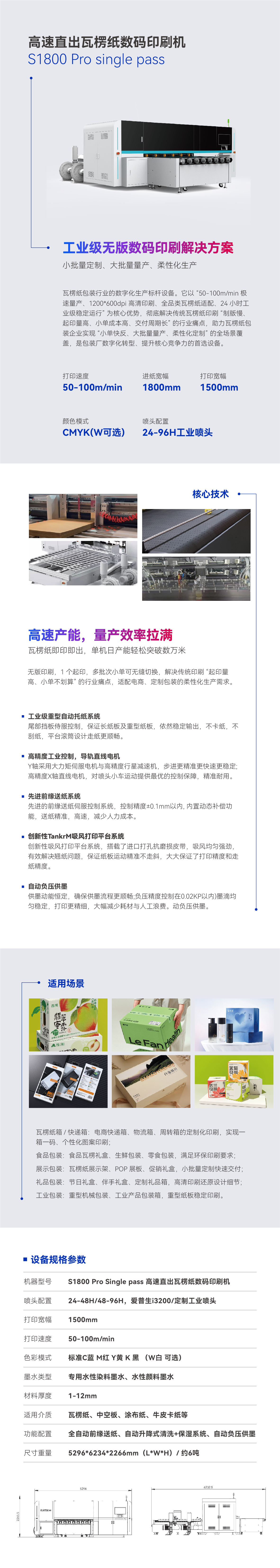 S1800 Pro single pass 高速直出瓦楞纸数码印刷机