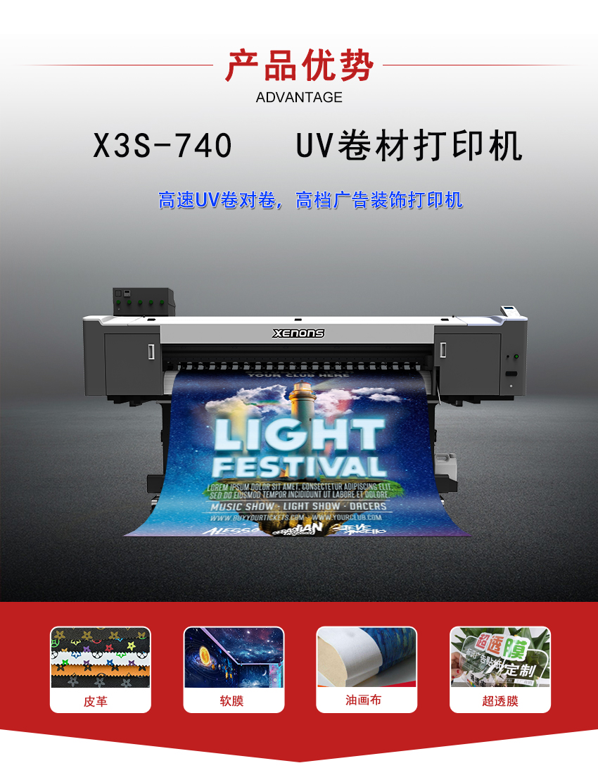 X3S 1.8m UV打印机 装配3个i3200-U喷头高速UV卷对卷