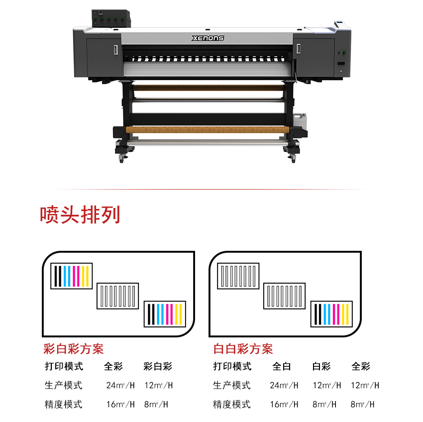 Xenons锐诺斯高精度UV卷材机,专注UV卷对卷高精度图像输出 喷头:i3200-U/Ricoh GEN5/GEN6 打印速度: 24㎡/h 打印宽幅:1.8米 打印精度:3200dpi 主要打印材料:
