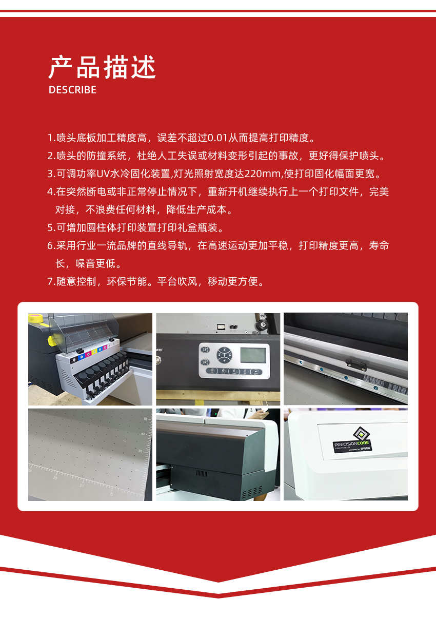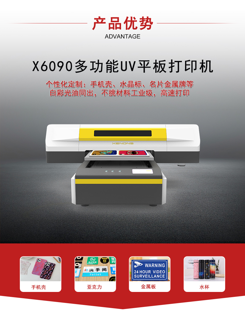 锐诺斯X6090小型UV平板打印机 工业级高速平板打印机 专用i3200喷头,打印速度:10㎡/h 可打印玻璃、瓷砖、木板、金属板、吊顶天花板、纸张、皮革、壁纸、雪弗板等材料。无需制版,印刷快、成本低可以印制浮雕式立体效果。
